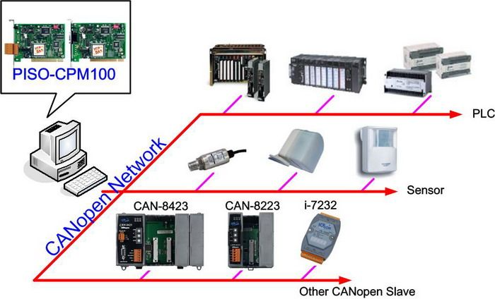 The PISO-CPM100 gives a very powerful and economic solution of an active CANopen master device with one CAN channel. It uses the NXP SJA1000T and 82C250 to be the CAN controller and transceiver, which provide bus arbitration, error detection with auto correction and re-transmission function. The 16-bit on-board microcontroller with real-time O.S., MiniOS7, allows many features, such as real-time message transmission and reception, filtering, preprocessing, and storage of CAN messages. Under the effect of the powerful microcontroller, this card can be made for one CAN controller manager without losing data, even in systems with a high PCI bus load. Therefore, the CANopen critical process can be implemented directly by CANopen firmware in the PISO-CPM100. In addition, users can develop their CANopen application by using the CANopen library on the host computer. When the PISO-CPM100 is active, the data exchange between users’ application and CANopen firmware is performed via the memory mapping method of the PISO-CPM100.