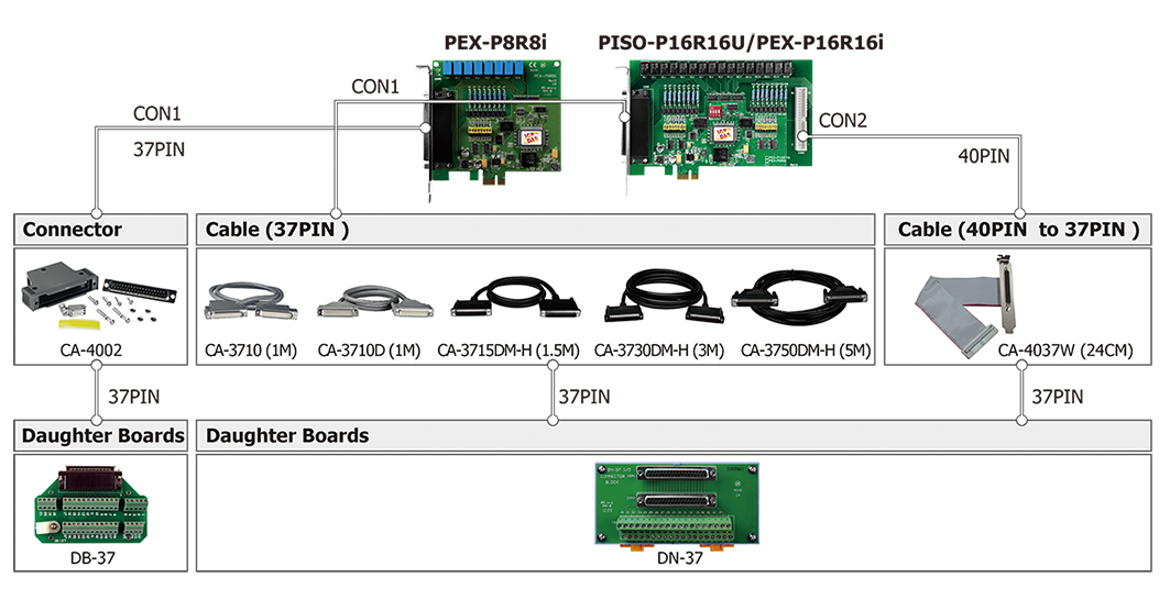 | Model Name | PCI-P16R16U | PISO-P16R16U | PEX-P16R16i | PEX-P8R8i |