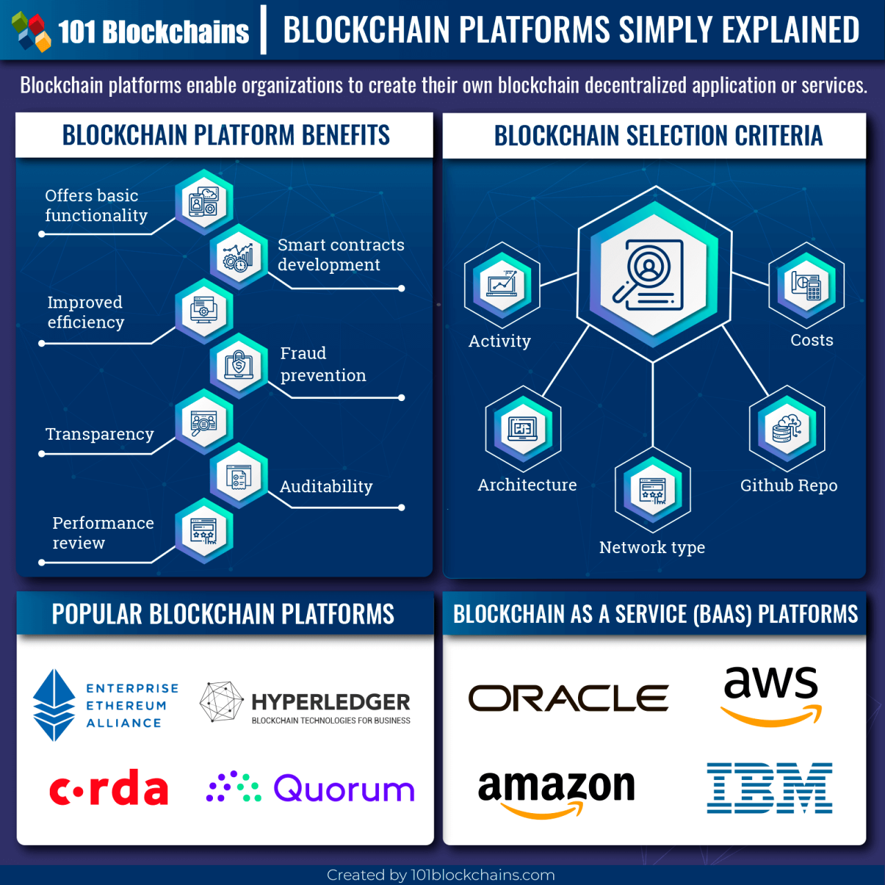 Blockchain Platform về bản chất là một Nền tảng (Platform) đám mây phân tán toàn diện để cung cấp các mạng blockchain, tham gia các tổ chức khác và triển khai & chạy các hợp đồng thông minh để cập nhật và truy vấn sổ cái. Chia sẻ dữ liệu một cách đáng tin cậy và thực hiện các giao dịch đáng tin cậy với các nhà cung cấp, ngân hàng và các đối tác thương mại khác thông qua tích hợp với các ứng dụng on-premise hoặc trên Nền tảng (Platform) đám mây mới.