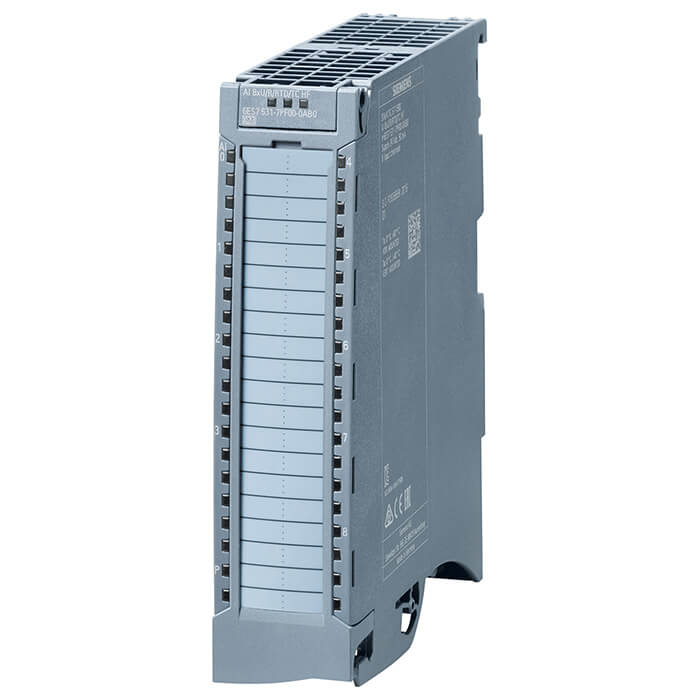 | SIMATIC S7-1500 Analog input module, AI 8xU/I/R/RTD BA, 16 bit resolution, Accuracy 0.5%, 8 channels in groups of 8; Common mode voltage 4 V DC, Diagnostics; Hardware interrupts; Delivery including infeed element, shield bracket and shield terminal: Front connector (screw terminals or push-in) to be ordered separately | 6ES7531-7QF00-0AB0 |