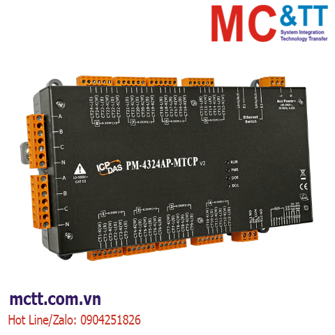 Thiết bị đo điện thông minh 3 pha 8 kênh hoặc 1 pha 24 kênh 333mV CT Ethernet Modbus TCP ICP DAS PM-4324AP-MTCP CR