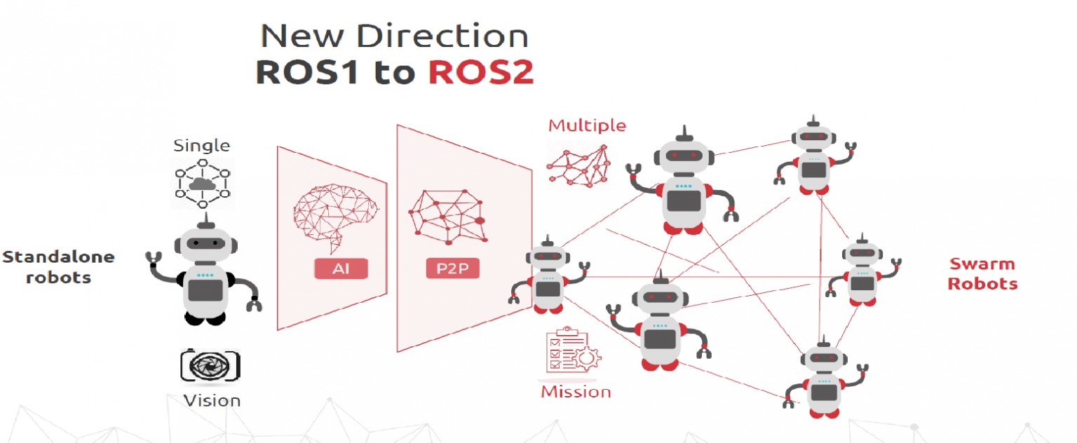 Hình 2. Một hướng đi mới – sự di chuyển từ ROS 1 sang ROS 2 cho phép tự chủ robot dạng nhóm
