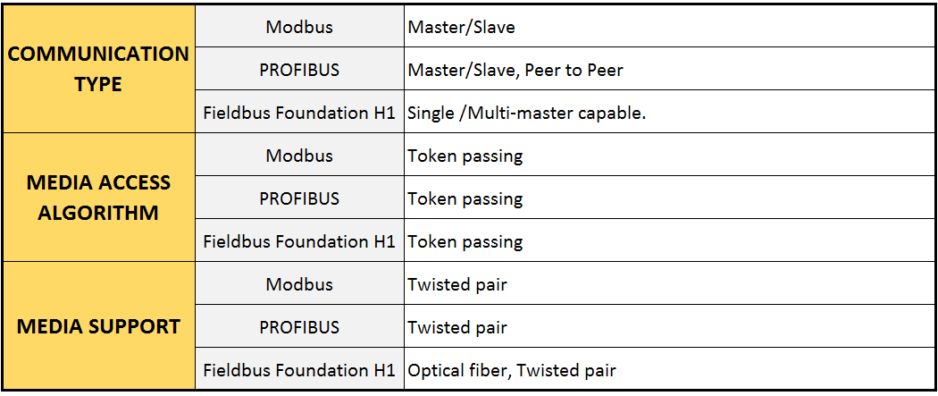 So sánh Modbus, Profibus và Foundation Fieldbus