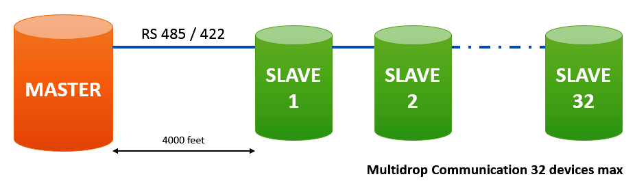 RS 232 là một giao tiếp điểm tới điểm, RS 485 hoặc RS 422 dành cho các ứng dụng multidrop.