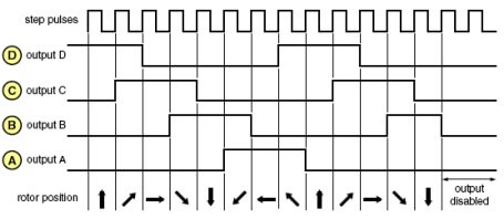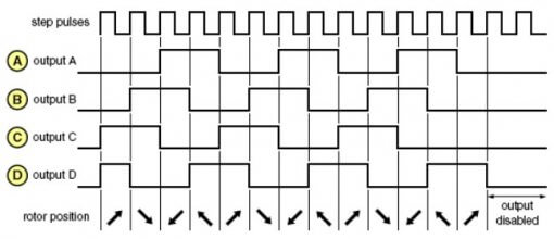 Loại điều khiển này kết hợp hai dạng trên lại. kết quả là Step Motor có thể di chuyển ở các góc có độ phân giải gấp 2 lần kiểu ở trên.