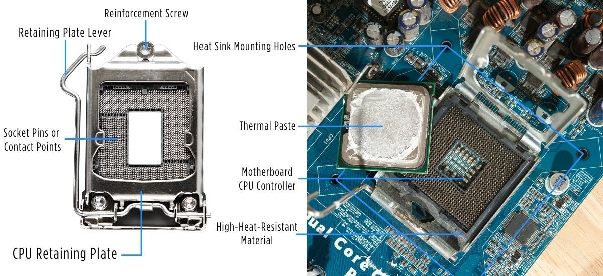 Có hai loại CPU cơ bản là CPU socket và CPU tích hợp SoC (system on chip). Socket CPU được cài đặt trên khe cắm CPU của bo mạch chủ. Các socket CPU được xây dựng với hàng nghìn điểm tiếp xúc dưới dạng chân kim loại để truyền nguồn và dữ liệu giữa CPU với bo mạch chủ. Các socket CPU được kết nối thông qua giao diện vật lý Land grid array(LGA) hoặc Pin grid array (PGA). Mặt khác, SoC là một chipset độc đáo đã đưa CPU với các thiết bị ngoại vi thiết yếu khác như bộ nhớ và bộ xử lý đồ họa vào một chip silicon duy nhất. Các SoC thường được hàn ngay trên bo mạch chủ với kết nối Ball grid array (BGA) và cung cấp mức tiêu thụ điện năng thấp cho IoT và các ứng dụng di động.