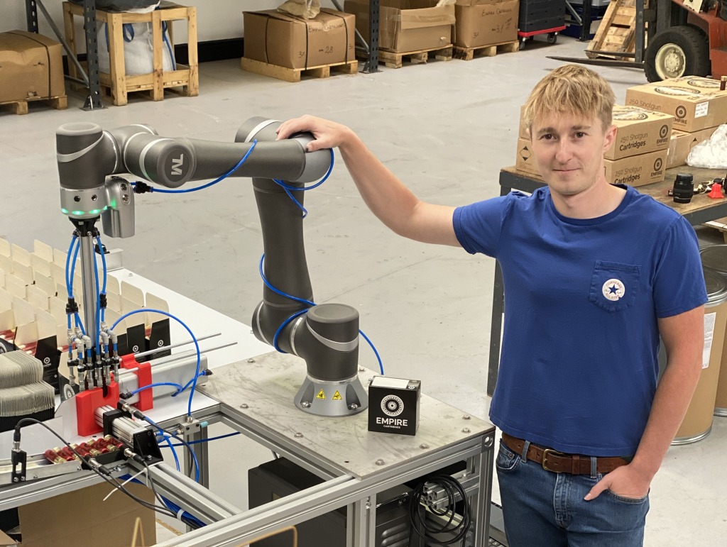 Nhà sản xuất đạn dược Empire Cartridges, có trụ sở tại Preston, đã đầu tư vào một cobot sáu trục và công nghệ điều khiển quy trình, giúp tăng sản lượng chế tạo vỏ hộp đạn súng ngắn lên ít nhất 50%.
