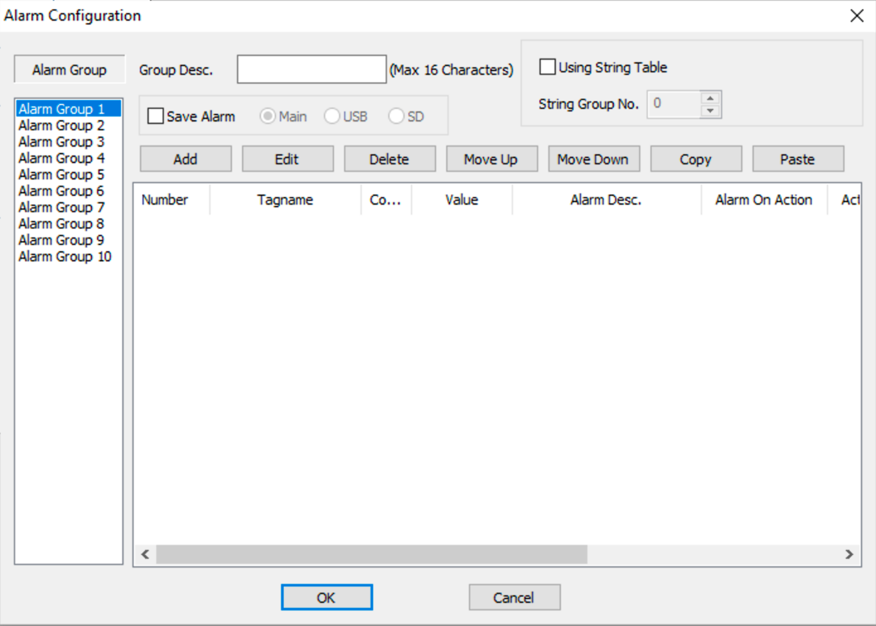 Hiển thị thông báo cảnh báo trong khoảng thời gian nhất định hoặc khi một sự kiện cụ thể xảy ra. Người vận hành có thể nhanh chóng xem và xác nhận các báo động đang diễn ra hoặc xem lịch sử báo động. Ngoài ra, tạo tối đa 10 cấp độ bảo mật khác nhau để ngăn người dùng trái phép truy cập hoặc sửa đổi dữ liệu hoạt động kinh doanh.