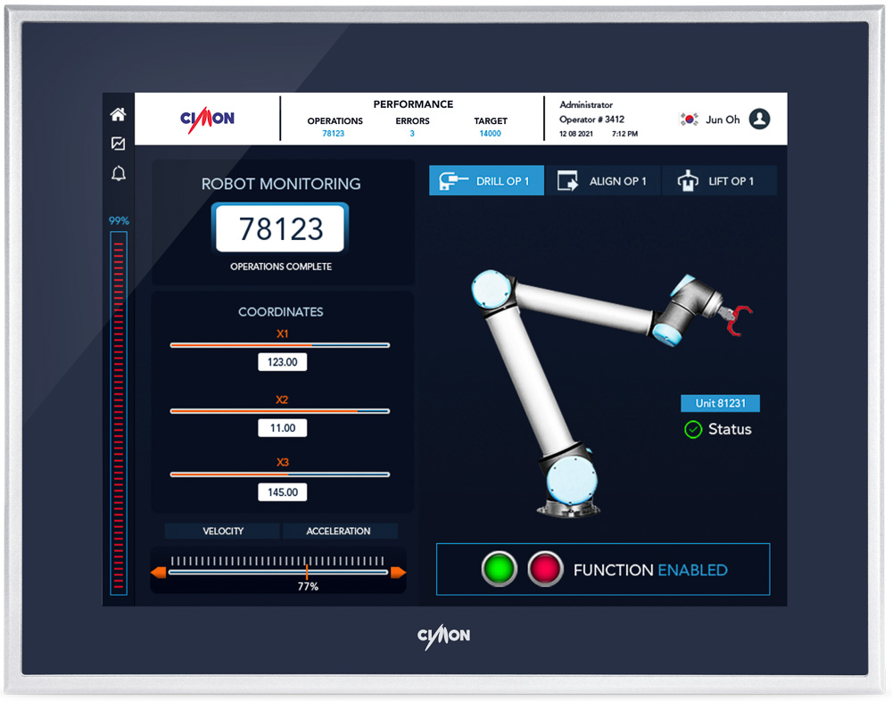 Màn hình cảm ứng HMI/ Xpanel CIMON chạy trên hệ điều hành Windows CE. Cimon Xpanel cung cấp độ tin cậy đã được kiểm chứng cho mọi môi trường công nghiệp. Phần mềm thiết kế trực quan, thư viện đồ họa phong phú, nhiều tính năng tích hợp như Recipe, Data Logging, Script, Trend, Data Server, Schedule, Data Bridge, Alarm, VNC server… cho phép người dùng rút ngắn thời gian triển khai và phát triển các dự án của mình một cách nhanh chóng.