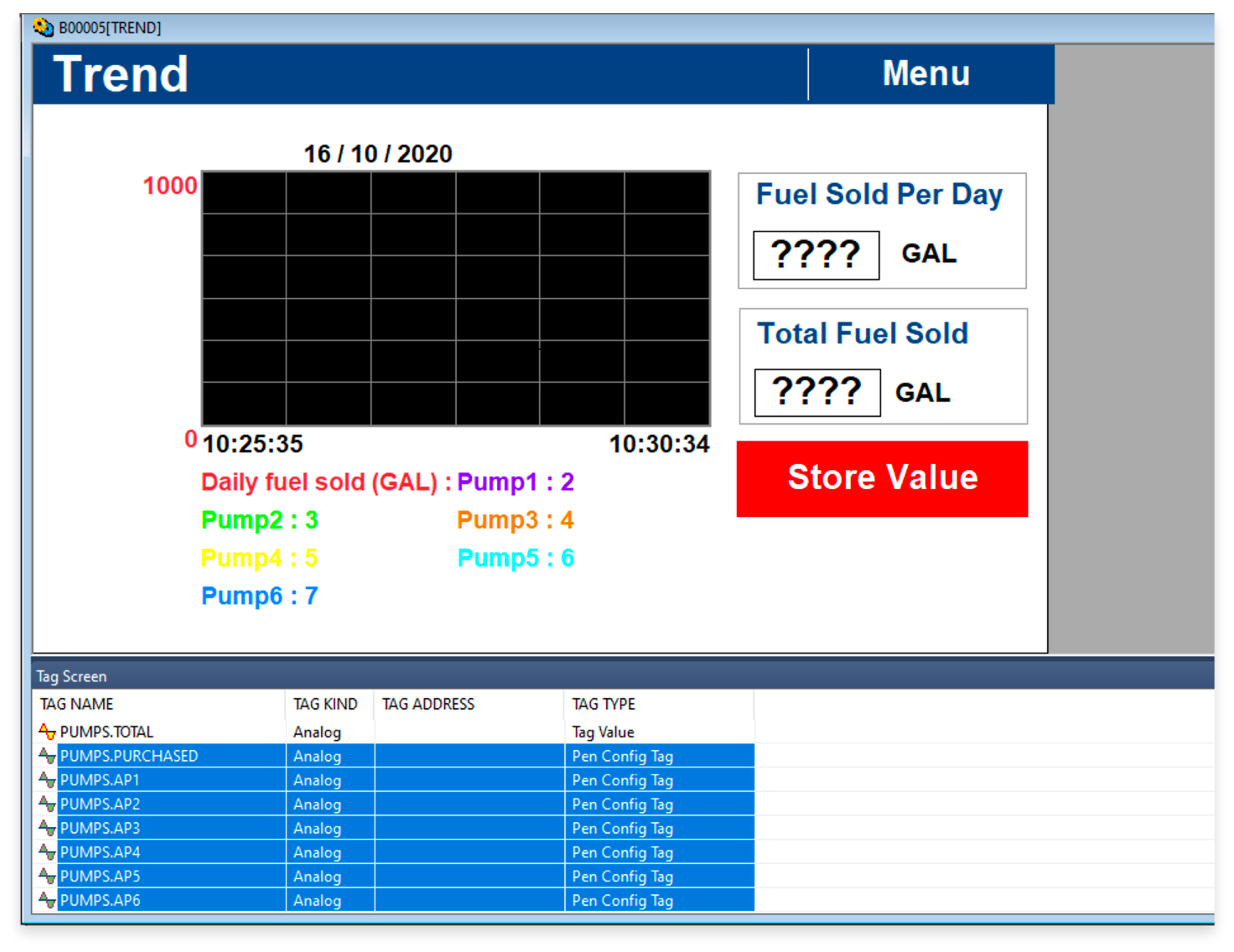Quan sát dữ liệu lịch sử và thời gian thực được theo dõi trên thiết bị Xpanel với đối tượng Biểu đồ xu hướng của XpanelDesigner. Chọn từ các loại xu hướng khác nhau được cung cấp để trực quan hóa dữ liệu.