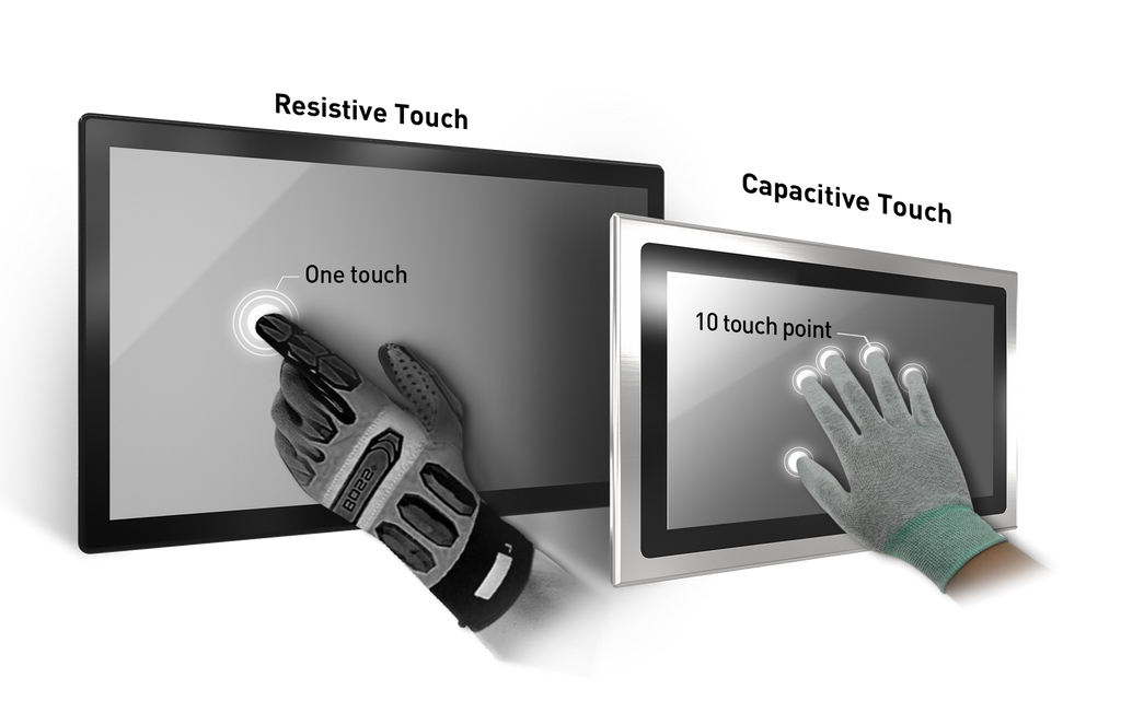 Màn hình cảm ứng điện dung sử dụng độ dẫn điện thay vì áp suất để phát hiện đầu vào. Màn hình cảm ứng điện dung cảm nhận các đặc tính dẫn điện, chẳng hạn như đầu ngón tay hoặc găng tay dẫn điện. Sử dụng độ dẫn điện để phát hiện cảm ứng giúp tăng khả năng phản hồi và độ nhạy, cho phép cảm ứng tối đa 10 điểm chạm và cử chỉ, do đó cung cấp nhiều tùy chọn hơn cho người dùng dựa trên các ứng dụng công nghiệp khác nhau, như thu phóng, chụm hoặc cảm ứng đa điểm. Màn hình cảm ứng điện dung đã được sử dụng rộng rãi trong các triển khai công nghiệp, chẳng hạn như ki-ốt và bán lẻ, trong đó nó yêu cầu màn hình cảm ứng có độ nhạy cao để có trải nghiệm người dùng cuối tốt hơn.