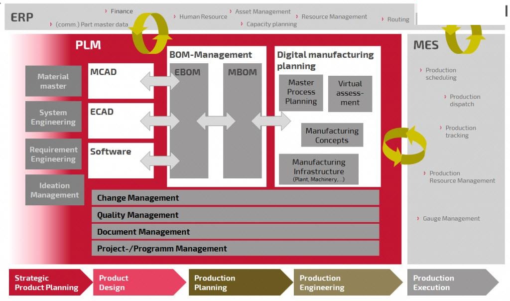 - Để giữ cho các hoạt động thay đổi phức tạp và nhanh chóng hơn trong tầm kiểm soát, chúng cần có khả năng hiển thị từ đầu đến cuối, qua ranh giới của các hệ thống. Để đưa ra quyết định đúng đắn, họ không chỉ cần dữ liệu sản xuất theo thời gian thực mà còn trong bối cảnh dữ liệu chủ đến từ PLM hoặc ERP.
