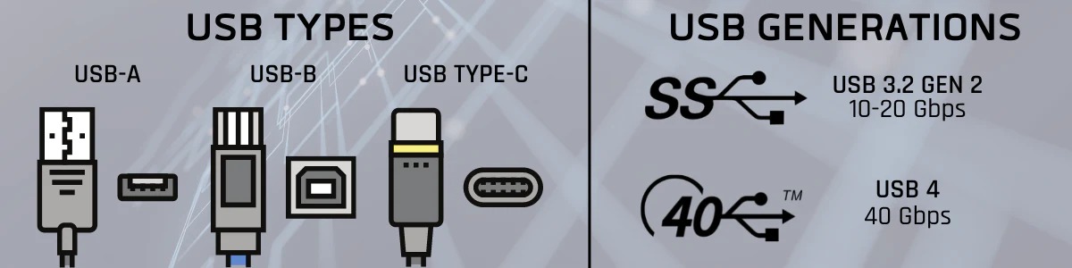 Có rất nhiều quan niệm sai lầm về USB Type-C và tất cả các thế hệ USB. Giống như yếu tố hình thức M.2, nhiều người cho rằng nó đã có hỗ trợ NVMe, tuy nhiên, M.2 chỉ là hình dạng kết nối vật lý. Khe cắm M.2 có nhiều loại với nhiều mục đích sử dụng khác nhau và không phải ổ SSD M.2 nào cũng sử dụng NVMe. USB Type-C là một đầu nối vật lý cho công nghệ USB. Tuy nhiên, thế hệ USB xác định những tính năng và khả năng mà đầu nối USB cung cấp. Hiện tại, USB Type-C hỗ trợ hai thế hệ USB là USB 3.2 Gen 2 và USB 4. Điểm khác biệt chính với USB 3.2 Gen 2 là nó có thể truyền dữ liệu lên đến 10 Gbps trong khi USB 4 đạt tới 40 Gbps.