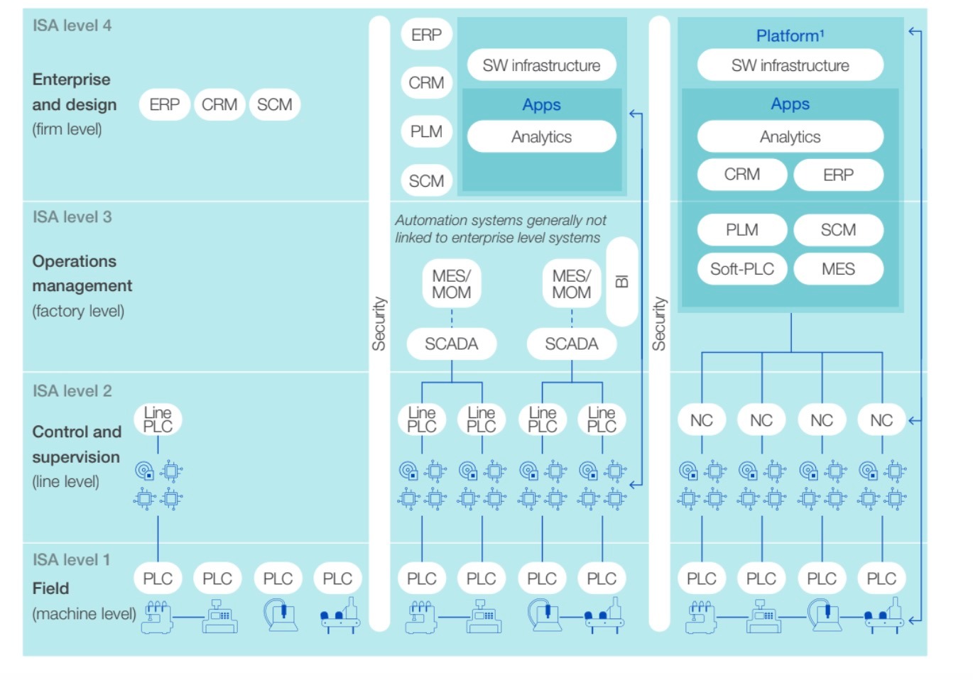 Bản chất không đồng nhất của nhà máy trong tương lai sẽ mở đường cho các nền tảng IoT bổ sung tính hợp nhất và quản lý các ốc đảo, giao thức khác nhau của hệ sinh thái kỹ thuật số công nghiệp. Xét cho cùng, khả năng tương tác, tính minh bạch thông tin và các quyết định phi tập trung là ba trong bốn nguyên tắc thiết kế làm nền tảng cho Công nghiệp 4.0: