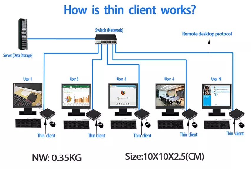 Chức năng chính là hiển thị màn hình và tương tác thông qua mouse, keyboard, nên yêu cầu về cấu hình của client thường không cao, giúp giảm được chi phí triển khai sau này.