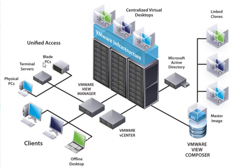 VDI (Virtual Desktop Infrastructure) là giải pháp về ảo hóa hạ tầng máy tính, tất cả các máy tính trong hệ thống VDI của công ty đều là máy ảo (VM – Virtual Machine).